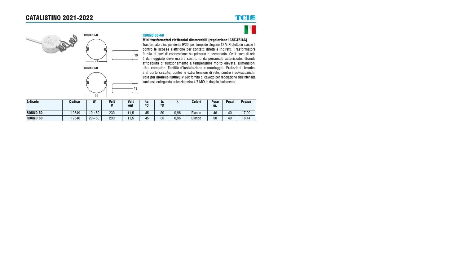 119640 TCI ROUND 60 trasformatore elettronico 60w 12vac per alogene