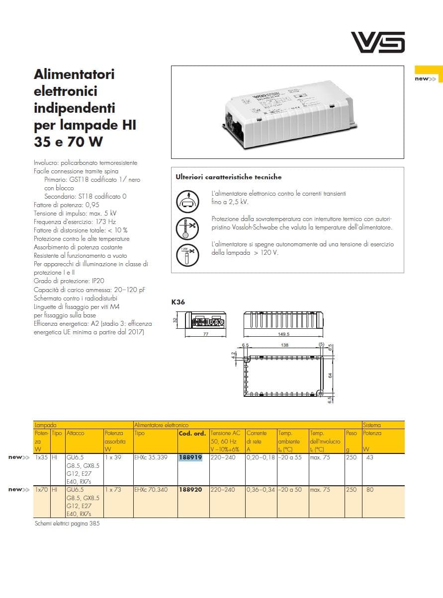 188919 VOSSLOH ALIMENTATORE IODURI METALLICI 35W
