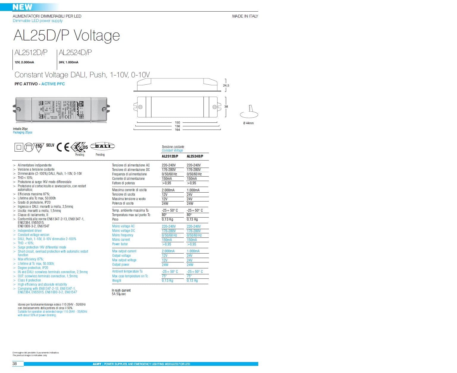 AL2524D/P Trasformatore elettronico 24w 24vdc dimmerabile dali /pulsante
