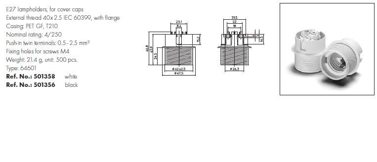 حامل المصباح أحادي الجسم E27 المغطى بالأطراف