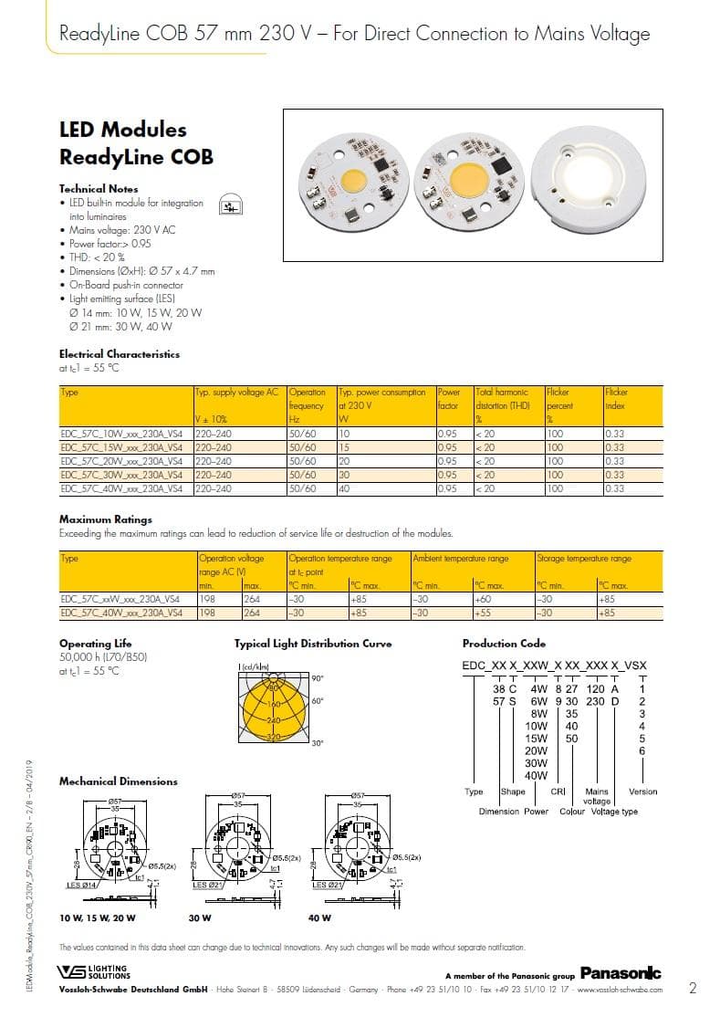 560991 VOSSLOH LED COB 230VOLT AC 40W 3000K