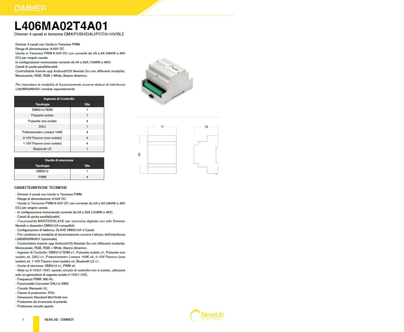 NEWLAB L406MA02T4A01 Dimmer 4 Spannungskanäle DMX/PUSH/DALI/POT/0-10V/BLE