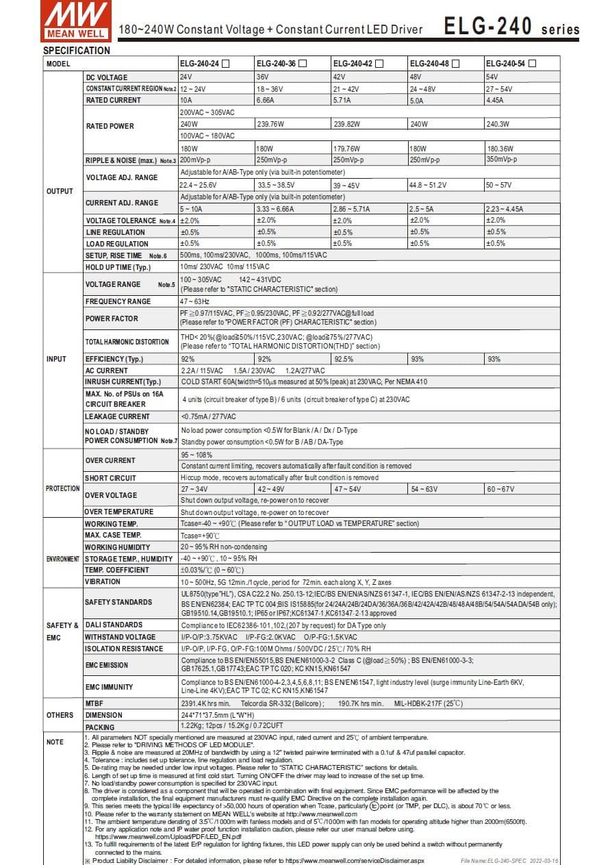 ELG-240-24 DA 3Y MEAN WELL TRASFORMATORE ELETTRONICO 240W 24VDC IP67