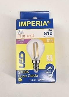 206621 IMPERIA LAMP E14 CLEAR BALL 2700K 6W