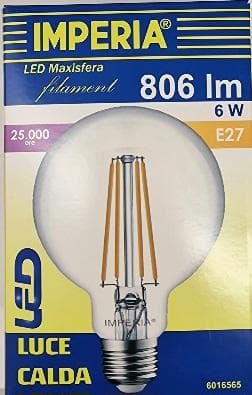 6016565 IMPERIA LAMP E27 CLEAR GLOBE D.95 6W 2700K