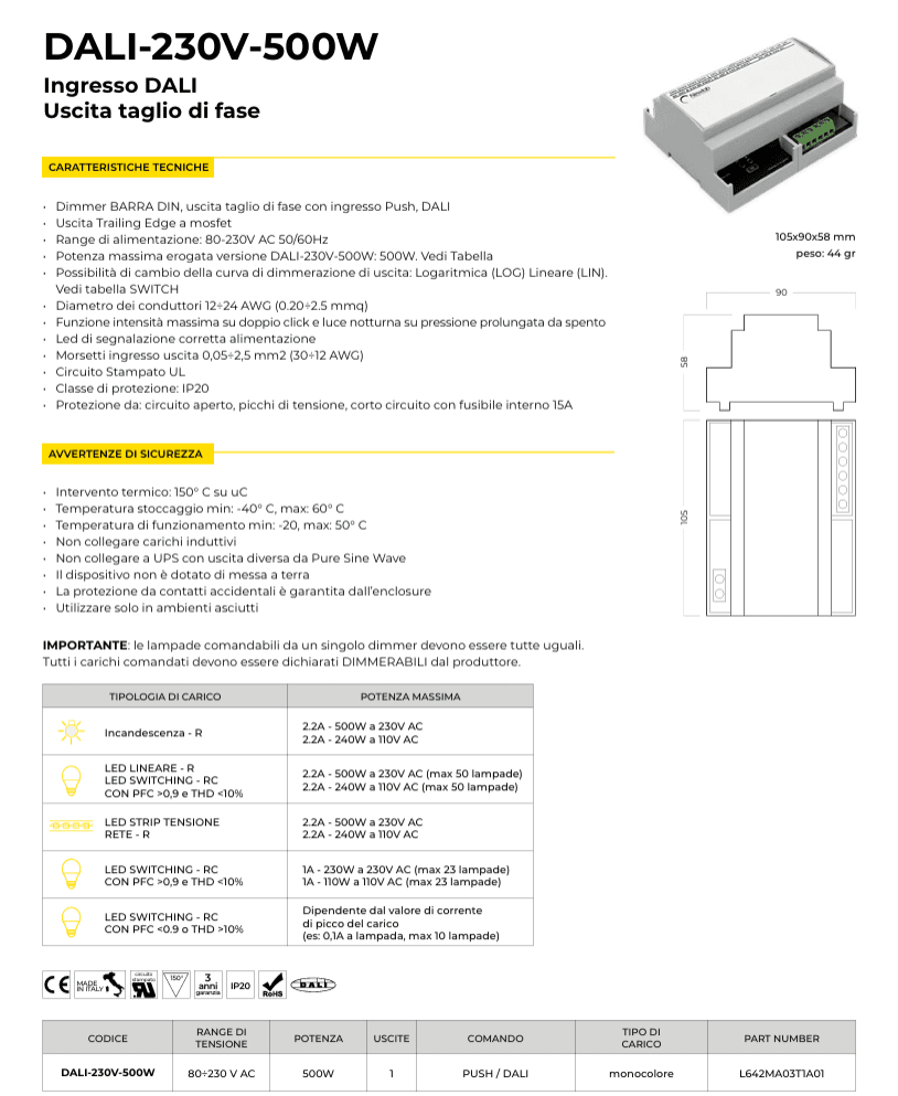NEWLAB L642MA03T1A01 REGULADORES DE LUCES DE CORTE DE FASE 500W DALI/PULSADOR