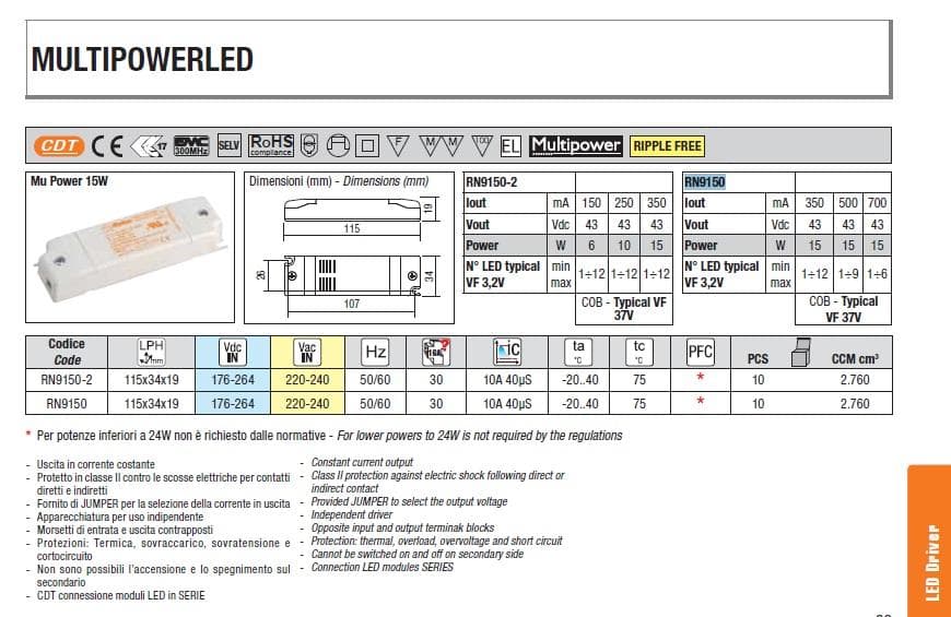 RELCO RN9150 FUENTE DE ALIMENTACION PARA LEDS 15W 350/500/700MA
