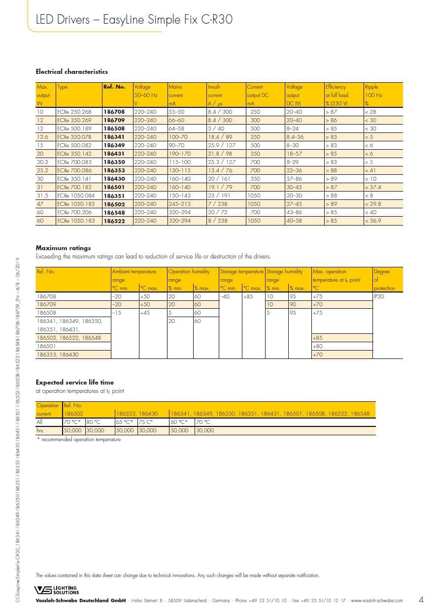 186708 VOSSLOH TRANSFORMATEUR ÉLECTRONIQUE 10W 250 MA
