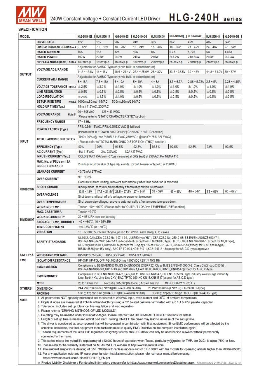 HLG-240H-24A MEAN WELL TRASFORMATORE ELETTRONICO 240W 24VDC IP67