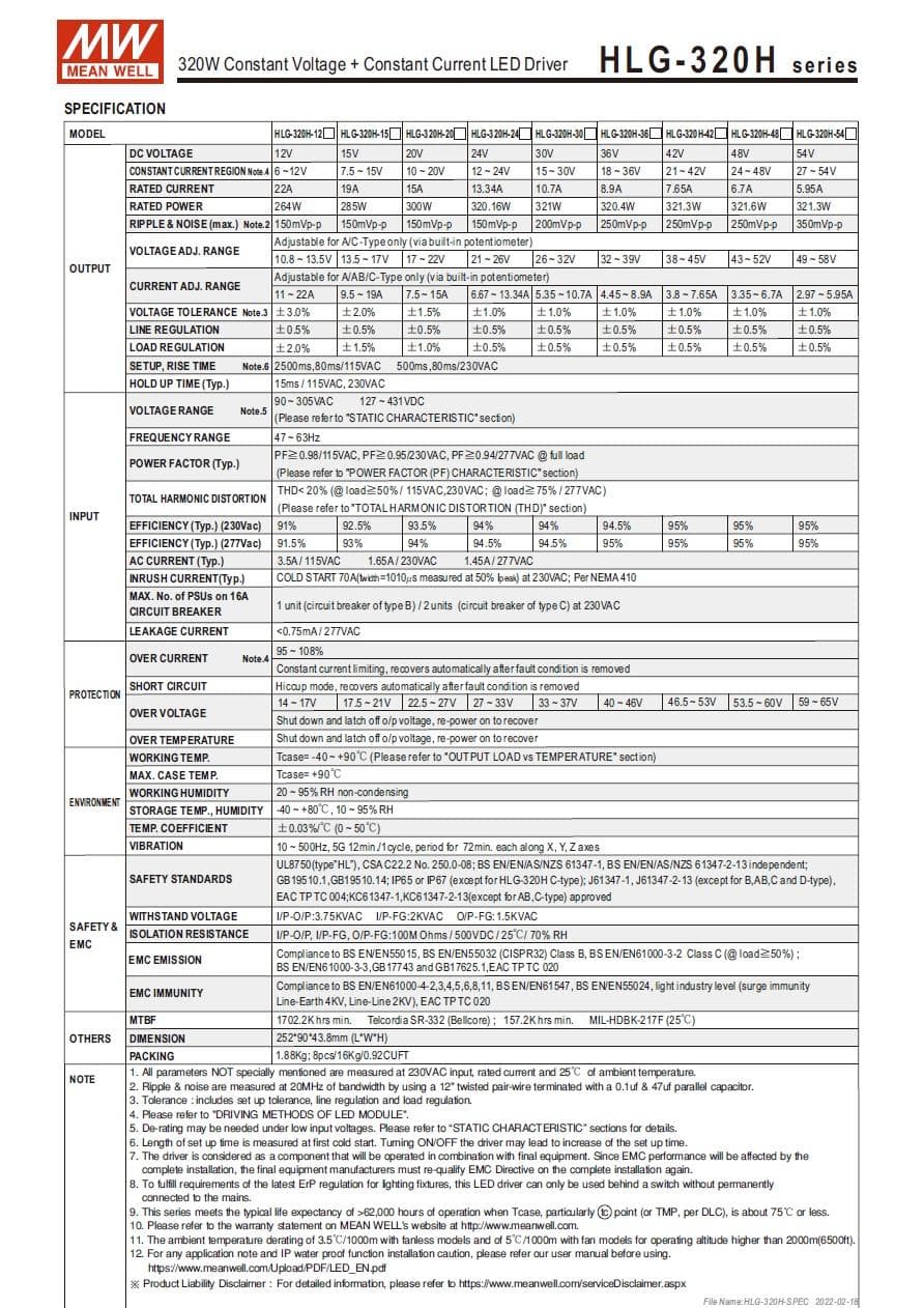 HLG-320H-24A MEAN WELL TRASFORMATORE ELETTRONICO 320W 24VDC IP67