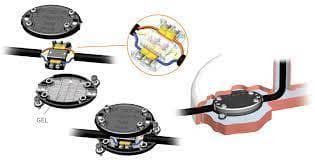 Conector IP 68 (para conexões estanques) à base de silicone GEL de dois componentes, pré-configurado na fábrica e, portanto, pronto para uso.