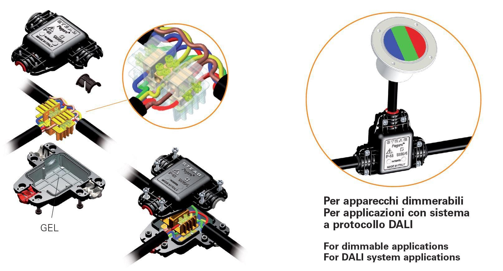 Conector IP 68 (para conexões estanques) à base de silicone GEL de dois componentes, pré-configurado na fábrica e, portanto, pronto para uso.
