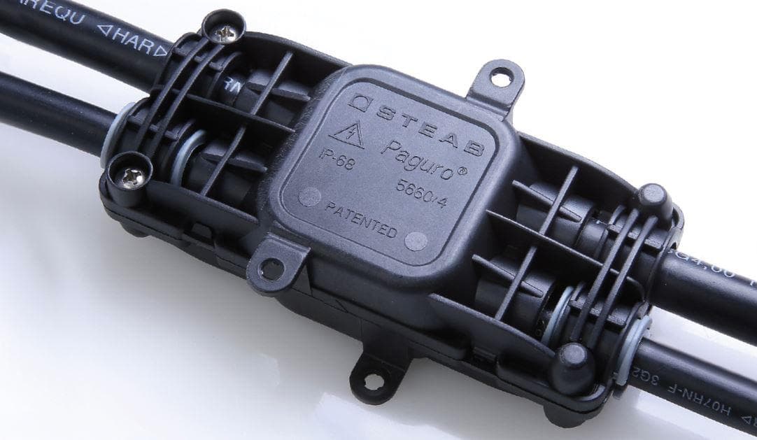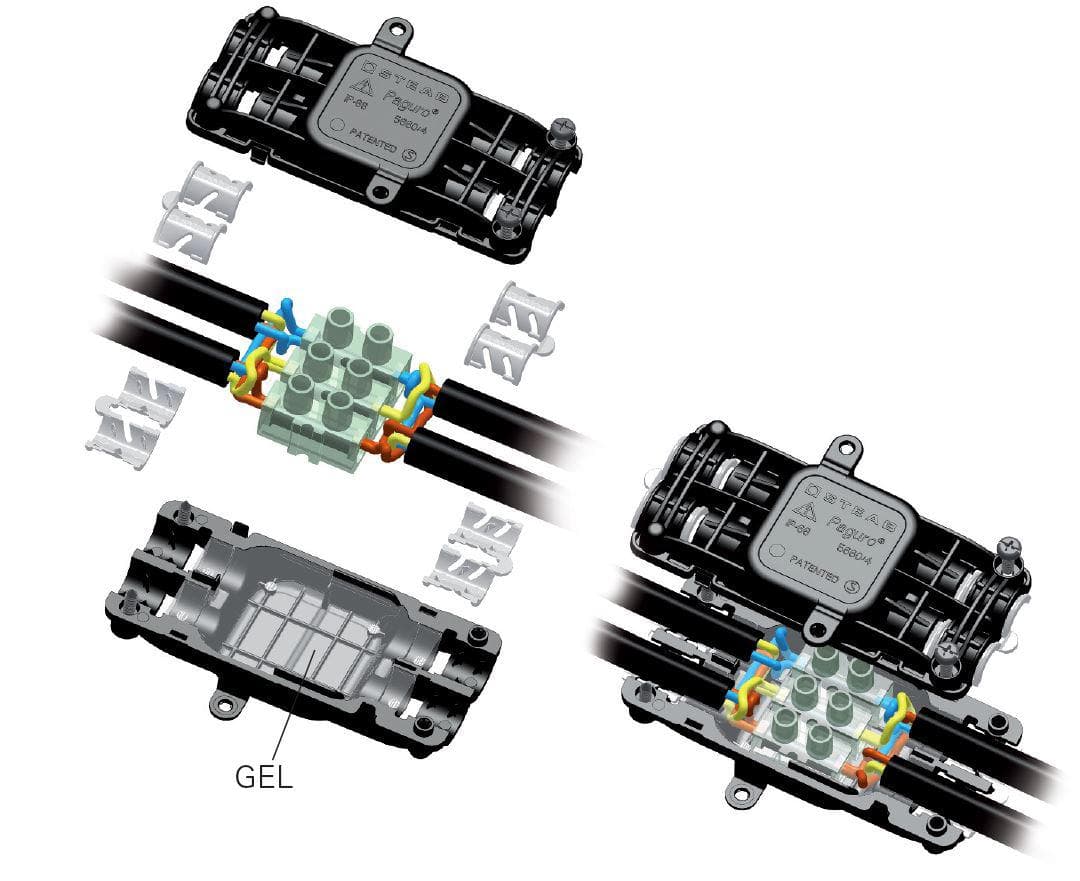 Conector IP68 (para conexões estanques) à base de silicone GEL de dois componentes, pré-configurado na fábrica e, portanto, pronto para uso.