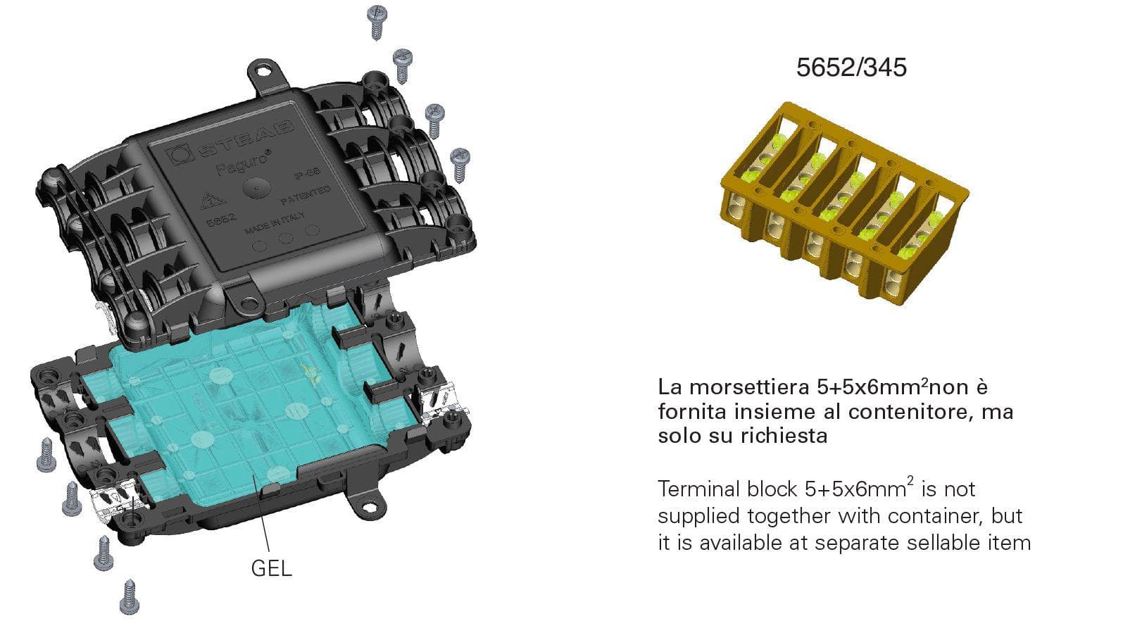 • Conector para cabos de até 5 polos (com borne Steab opcional)