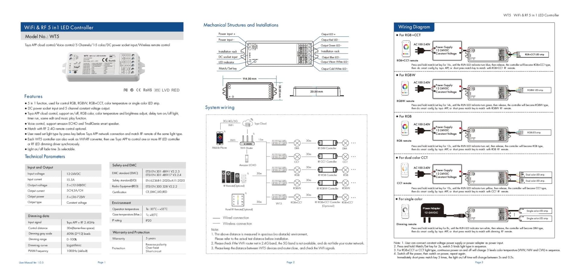 SKYDANCE WT5 CONTROLADOR BRANCO/ DINÂMICO BRANCO CORGB/RGBW /RGB DINÂMICO BRANCO WI-FI & RF