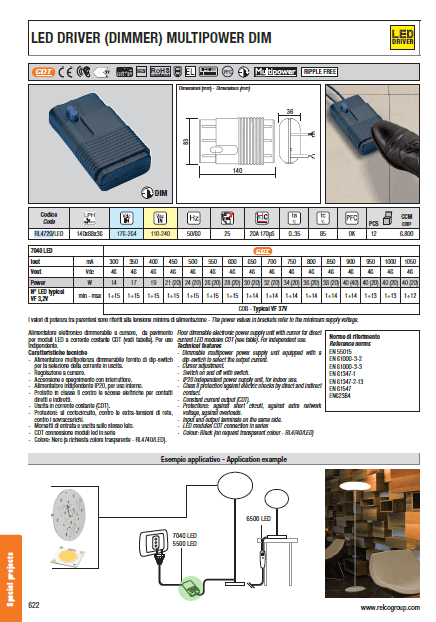 RELCO RL4720 LED DIMMER AMPERAGGIO COSTANTE PER LED 14/40W