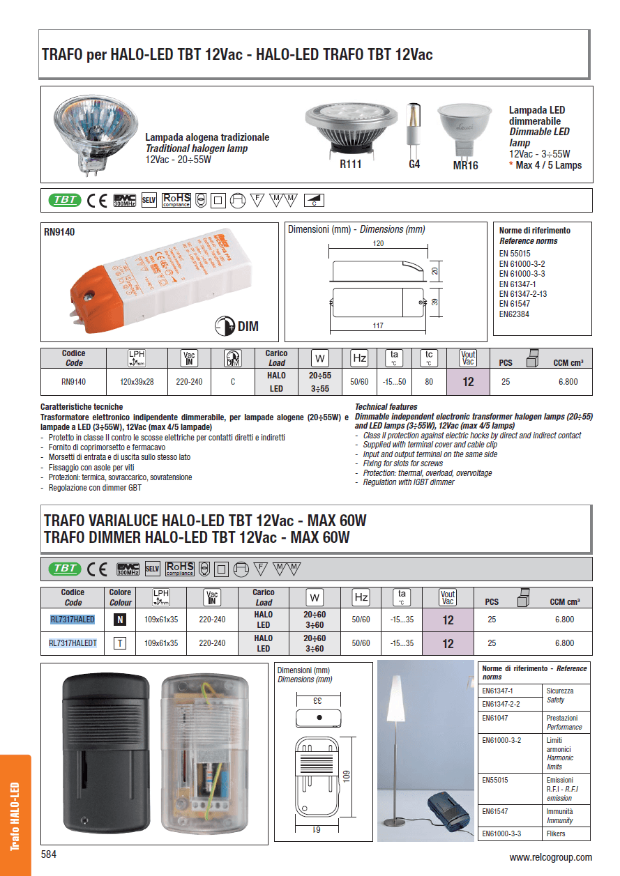 RELCO RL7317 DIMMER 5500 NERO 20-60W 12VAC PER ALOGENE